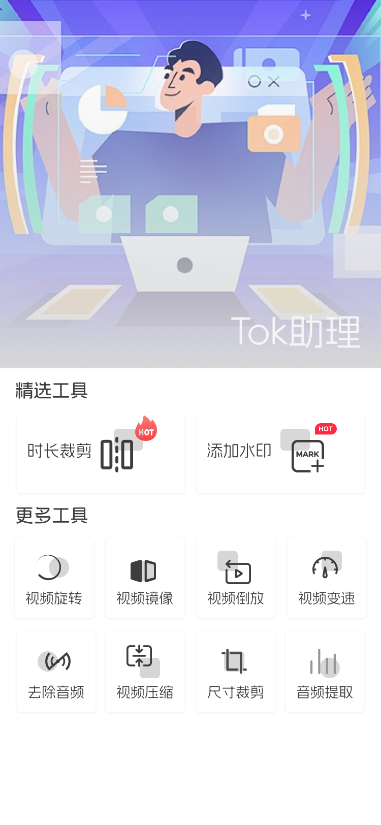 我司旗下tok助理是一款剪辑软件专为创意和效率设计,它拥有一个用户友好的界面,即便是剪辑新手也能快速上手。软件支持高清导入和导出,兼容多种流行格式,确保了广泛的适用性。核心功能包括添加水印、旋转、倒放、去除音频、音频提取、压缩等便捷的剪辑功能。用户可以轻松剪切、拼接,增强视频的视觉吸引力。无论是制作家庭视频、短片还是专业级影片,这款软件都能提供所需的一切工具,让视频剪辑变得简单而有趣。